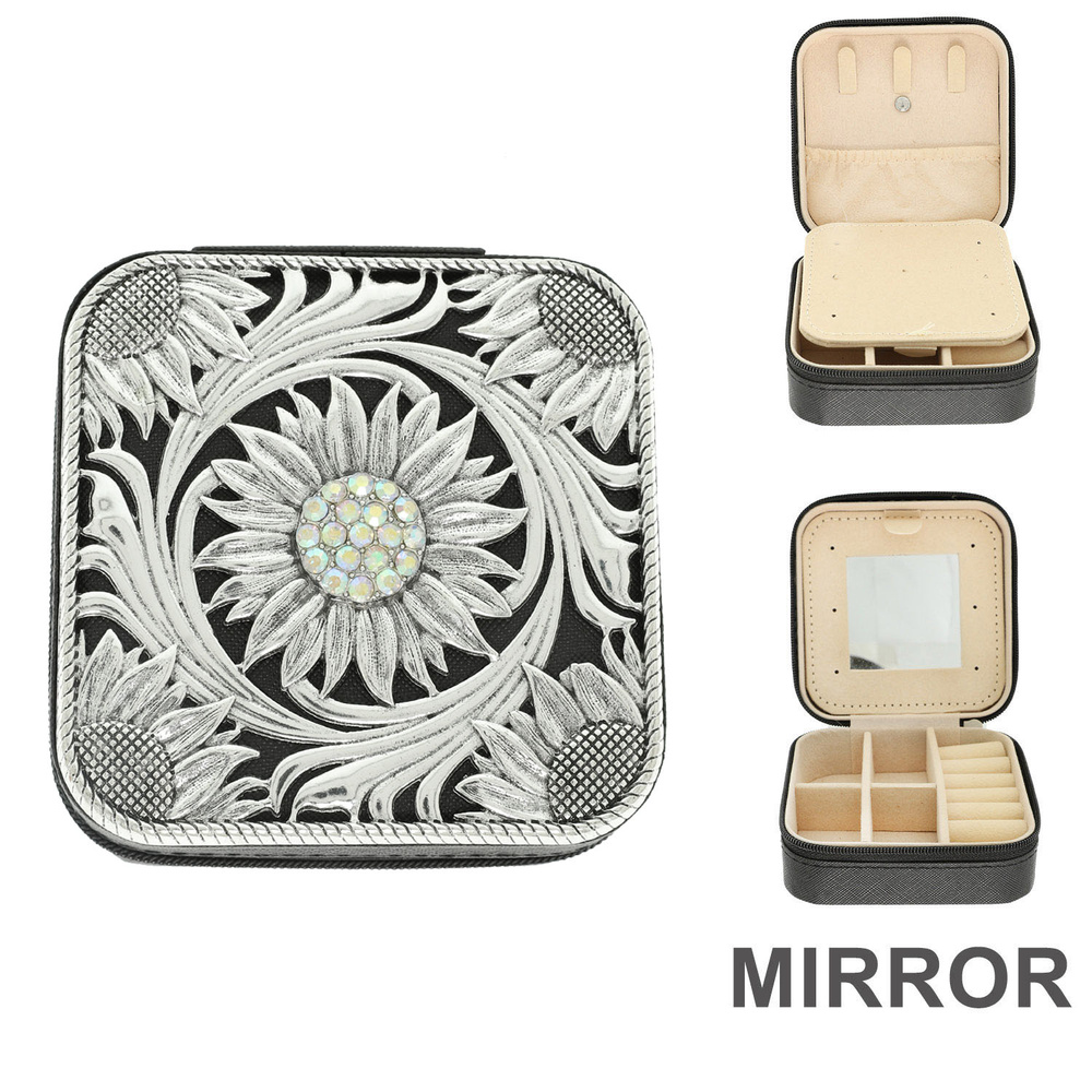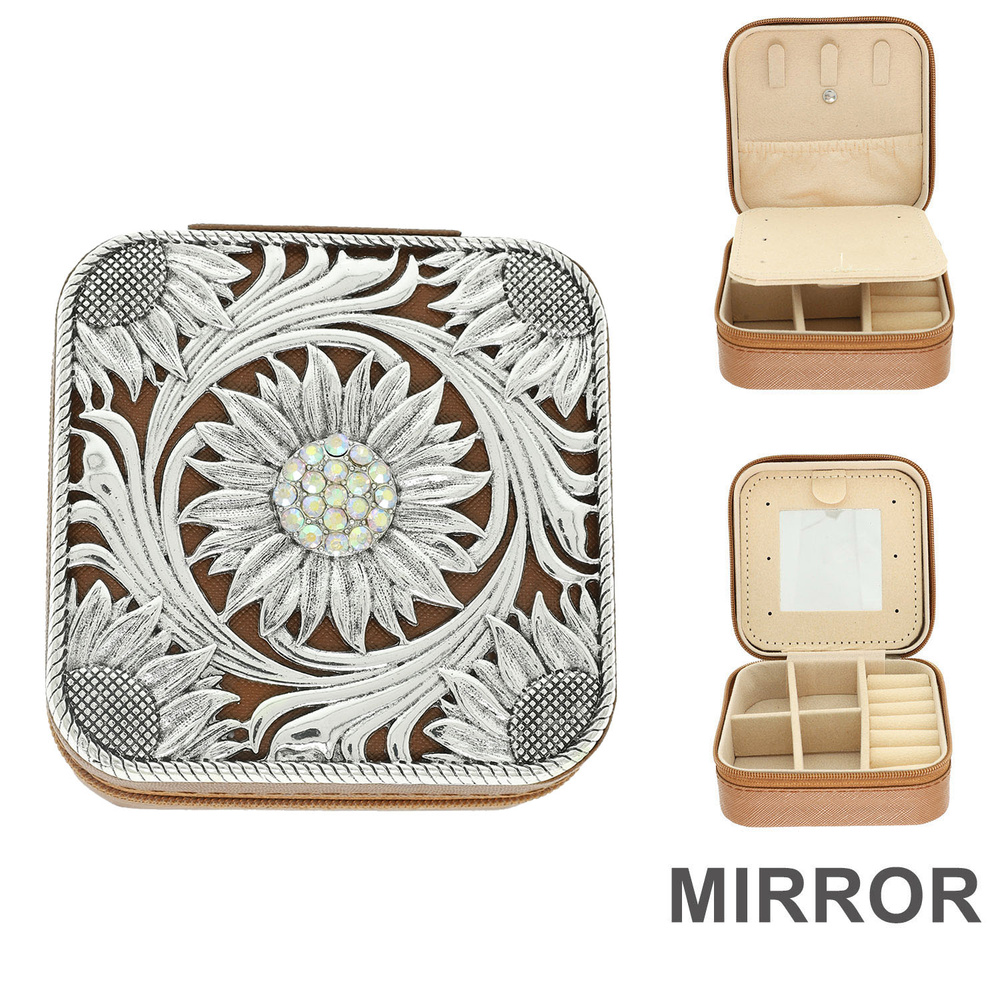 CRYSTAL EMBELLISHED SUNFLOWER METAL PLATE TRAVEL JEWELRY BOX