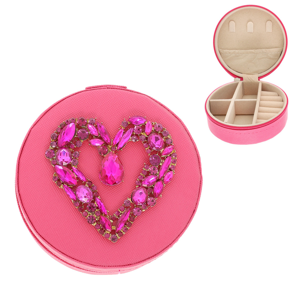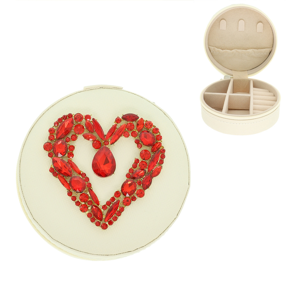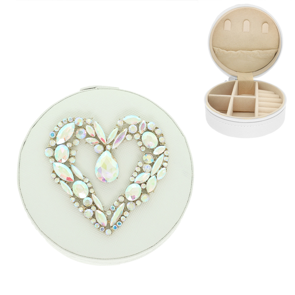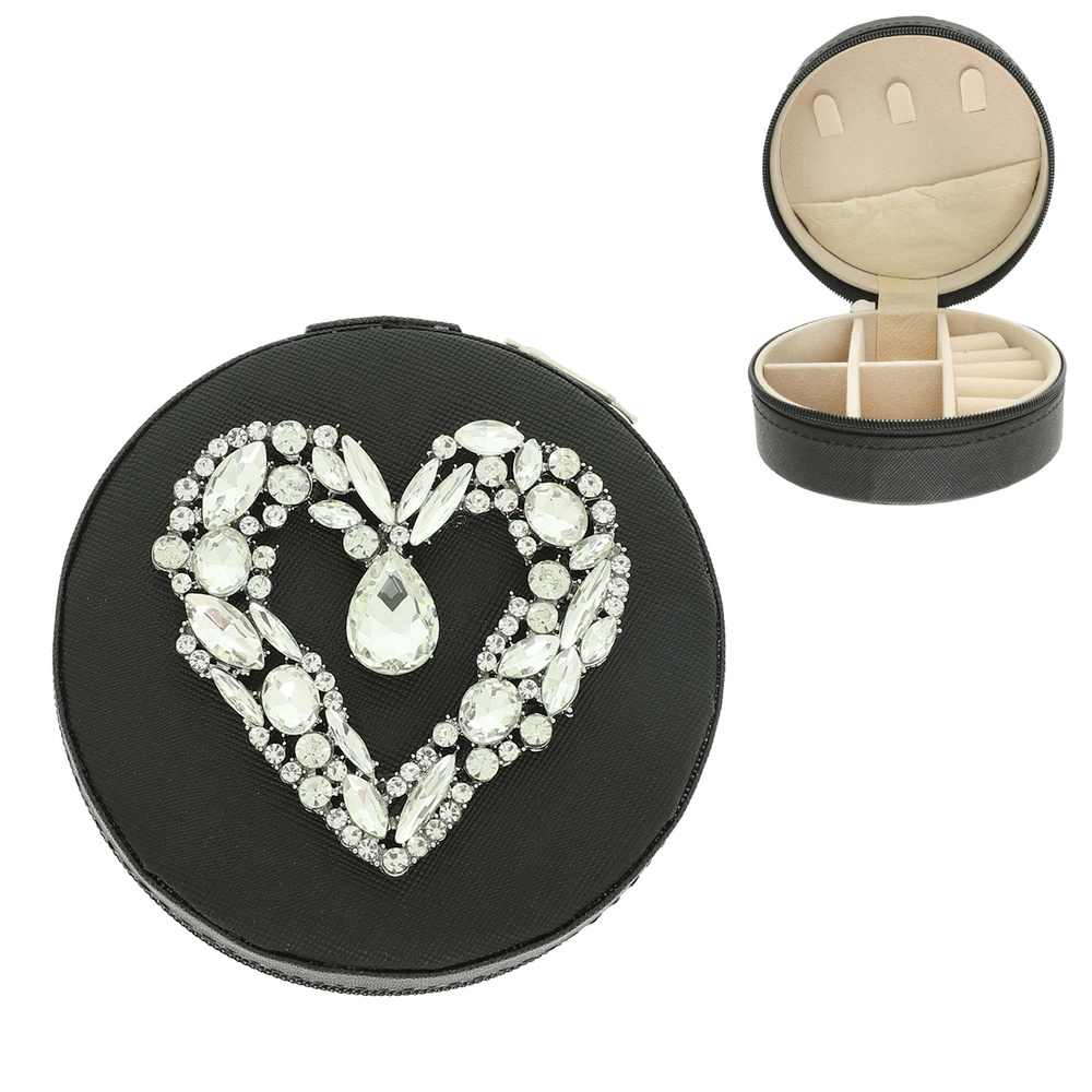 CRYSTAL HEART EMBELLISHED TRAVEL JEWELRY BOX WITH MULTIPULE COMPARTMENTS