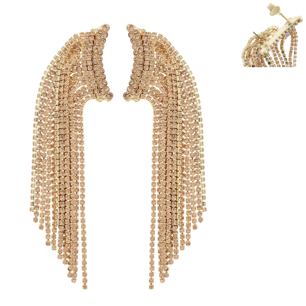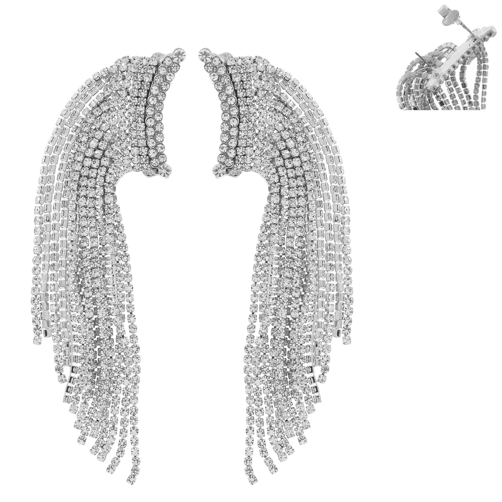 RHINESTONE WATERFALL TASSEL EAR CUFF EARRINGS