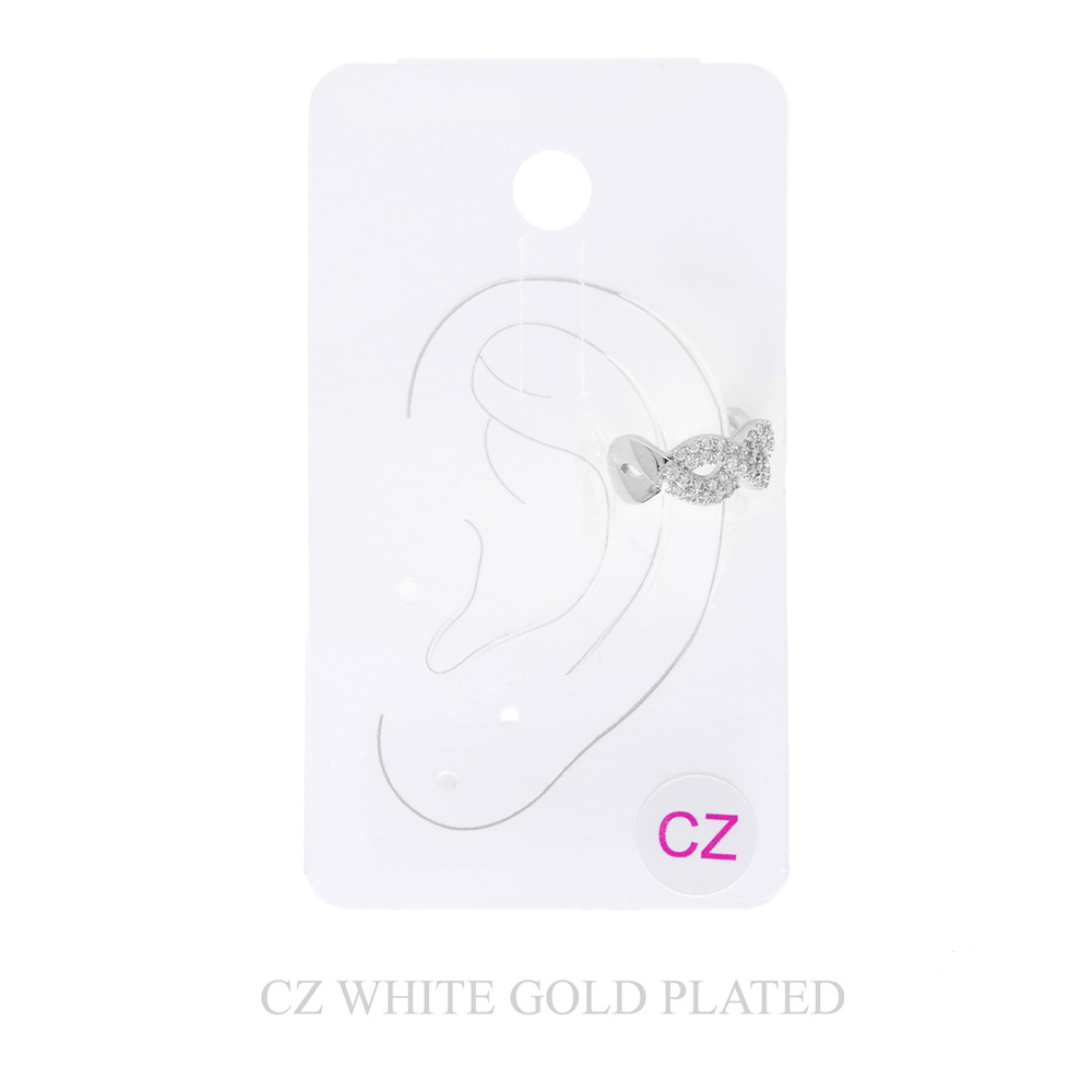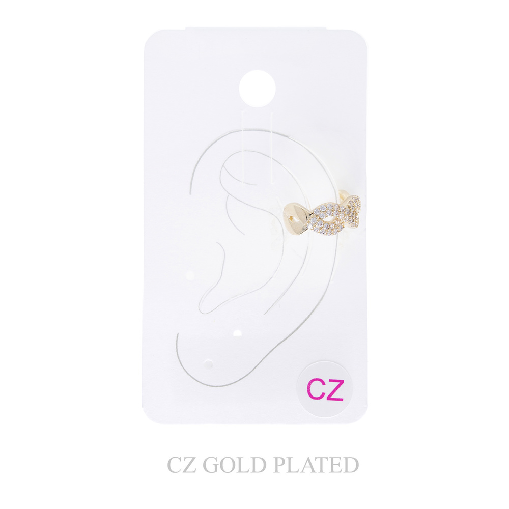 GOLD PLATED CUBIC ZIRCONIA PAVE INFINITY LOOP EAR CUFF EARRINGS IN YELLOW GOLD PLATTING
