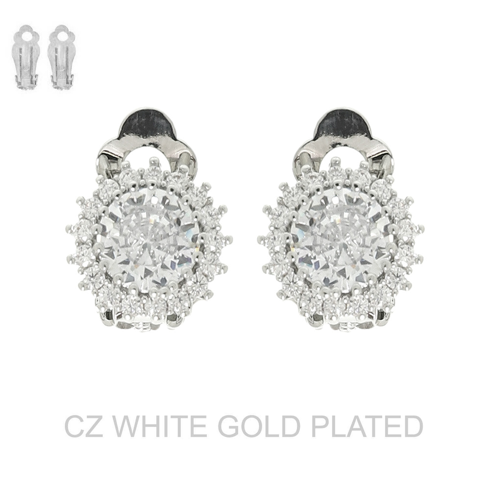 ART DECO INSPIRED HALO CUBIC ZIRCONIA CLIP ON EARRINGS IN GOLD PLATING