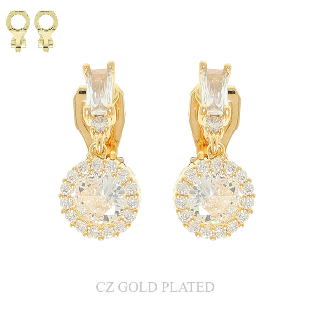 Gold Plated Cubic Zirconia Halo Clip-on Earrings
