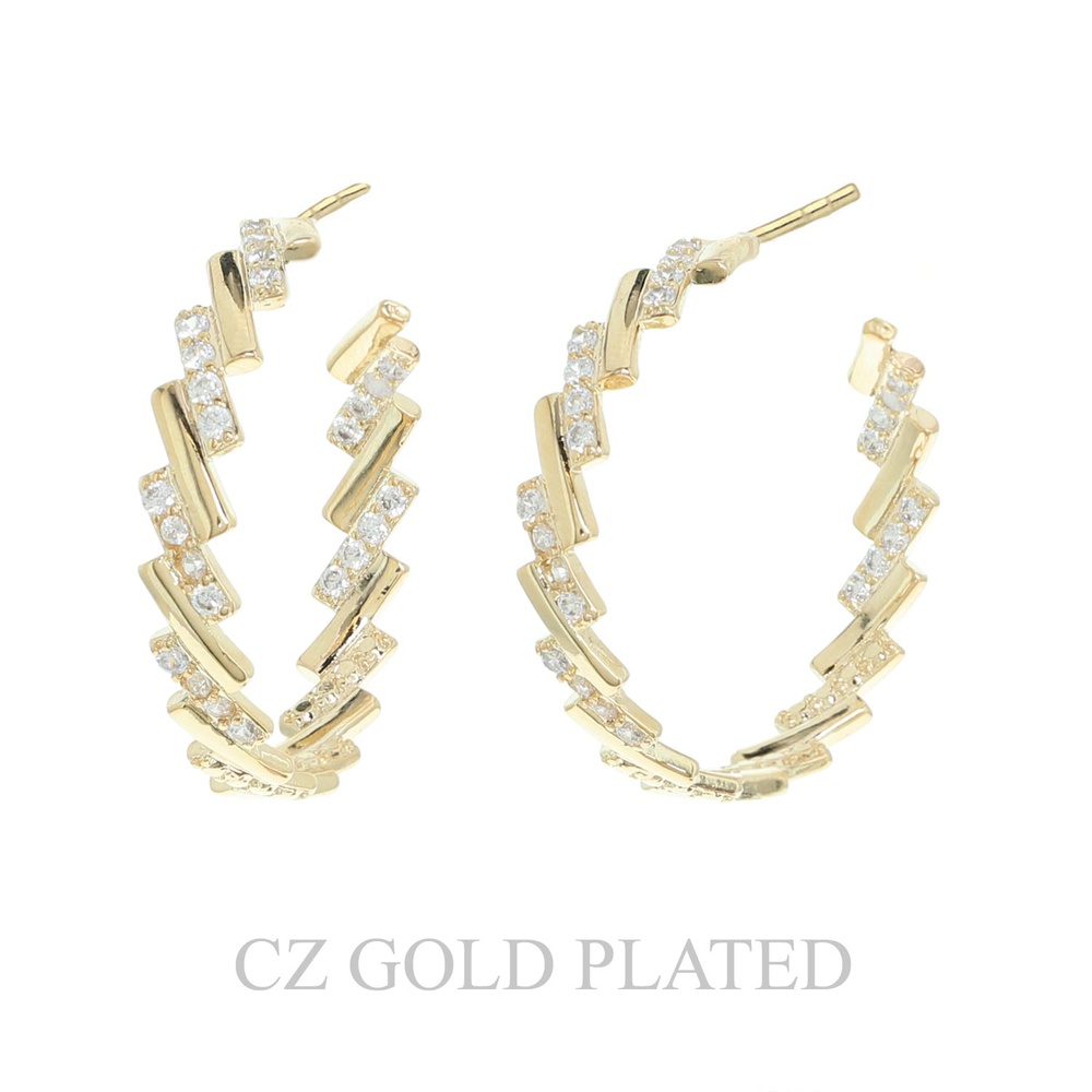 31mm Gold Plated Cz Zig-zag Half Hoop Earrings