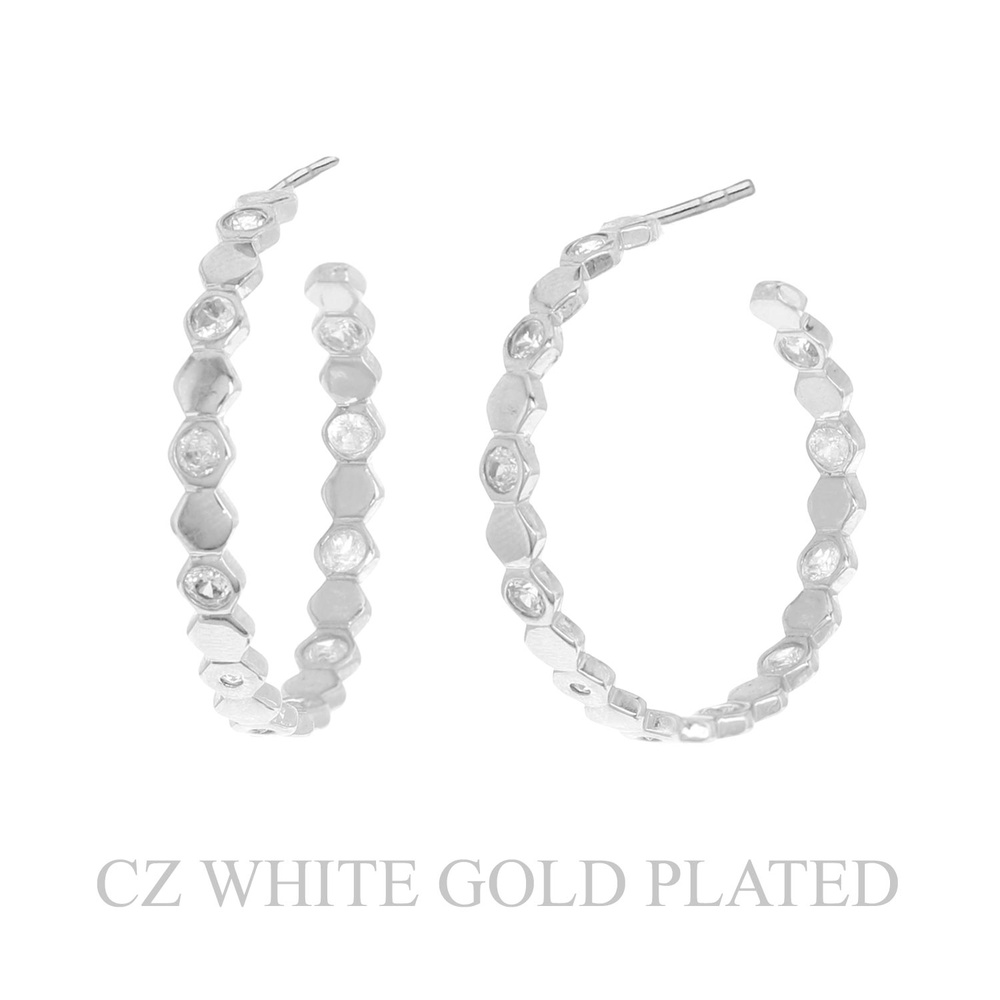 31mm Gold Plated Cz Hex Link Half Hoop Earrings