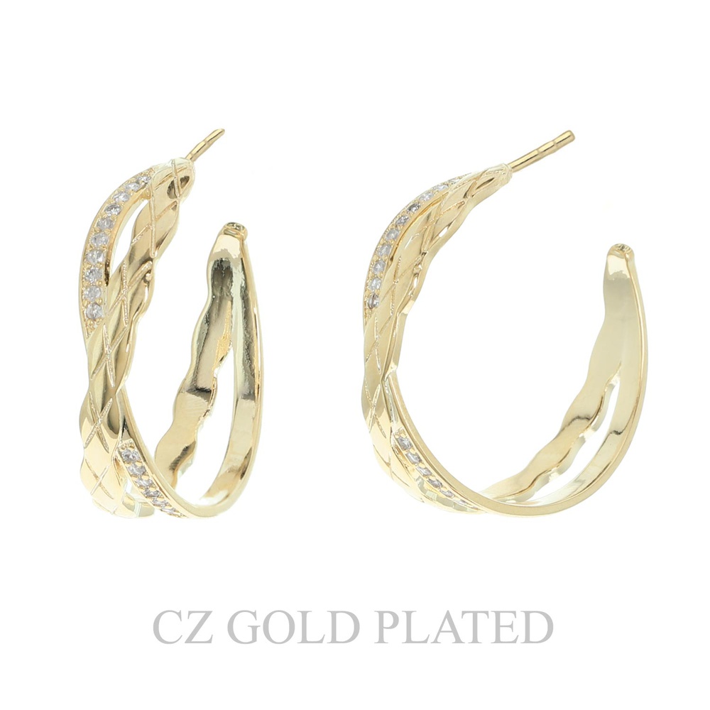 Gold Plated Cz Criss Cross Half Hoop Earrings