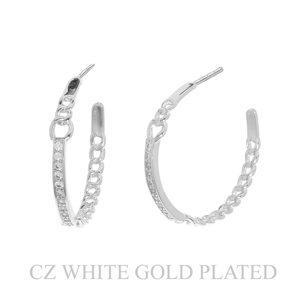 25mm Gold Plated Cz Chain Link Half Hoop Earrings