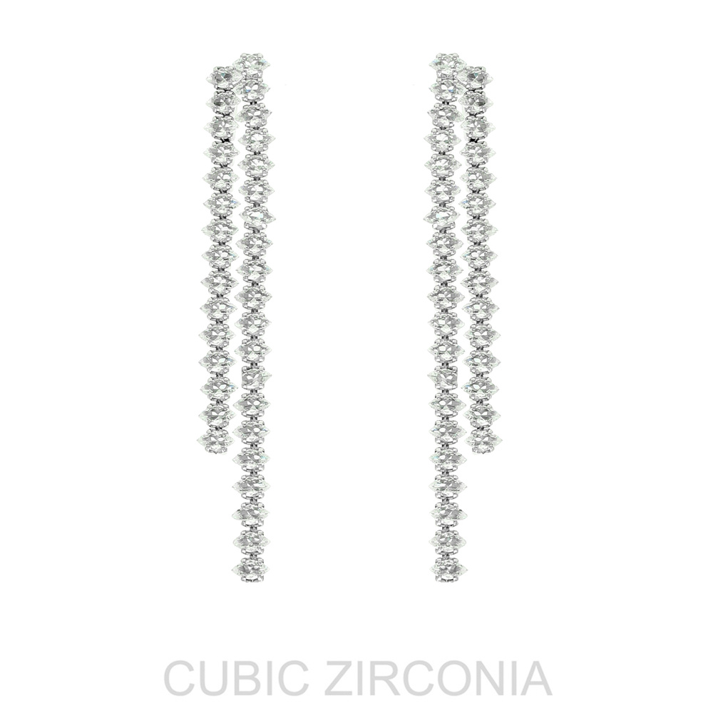 CUBIC ZIRCONIA DOUBLE STRAND LINEAR DROP EARRINGS
