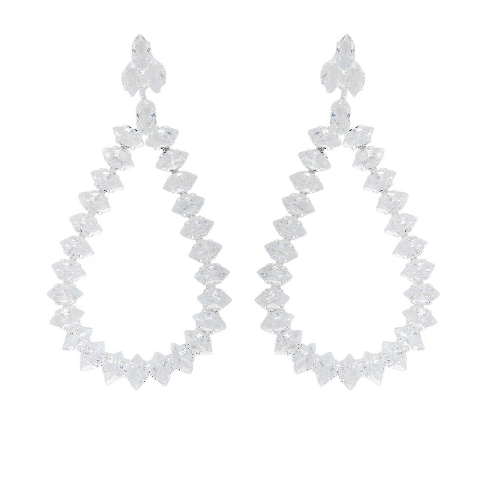 2-TIER CUBIC ZIRCONIA OPEN TEARDROP DROP EARRINGS