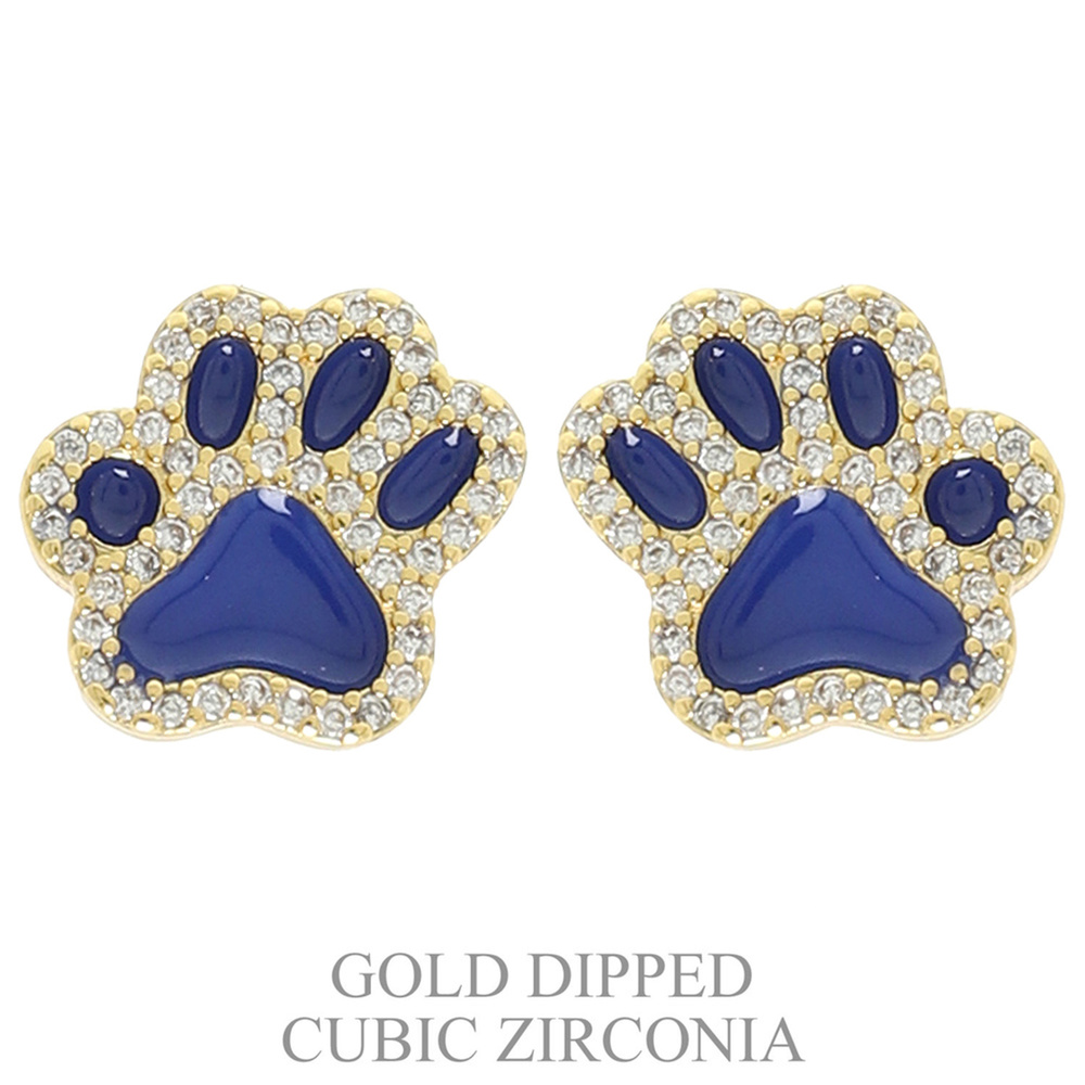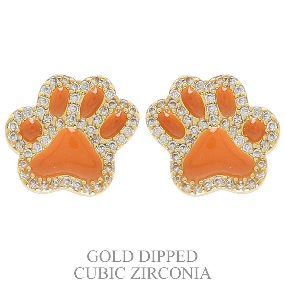 SPORTS GAME DAY GOLD PLATED CUBIC ZIRCONIA PAVE PAW STUD EARRINGS IN WHITE AND YELLOW GOLD PLATING STERLING SILVER POST
