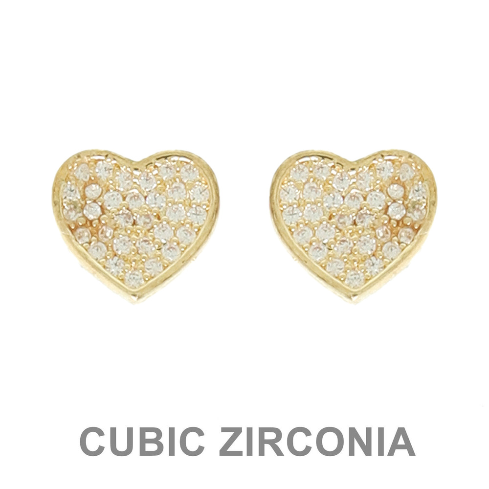 HEART SHAPED CUBIC ZIRCONIA PAVE STUD EARRINGS