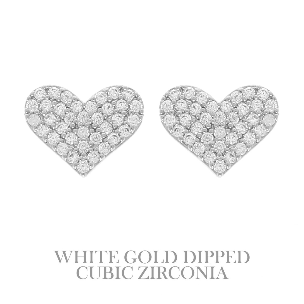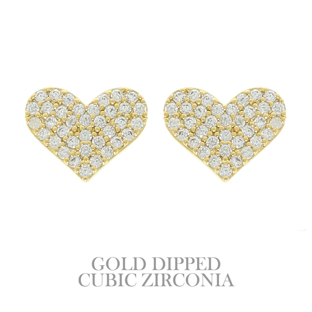 CUBIC ZIRCONIA PAVE HEART POST EARRINGS IN GOLD PLATING
