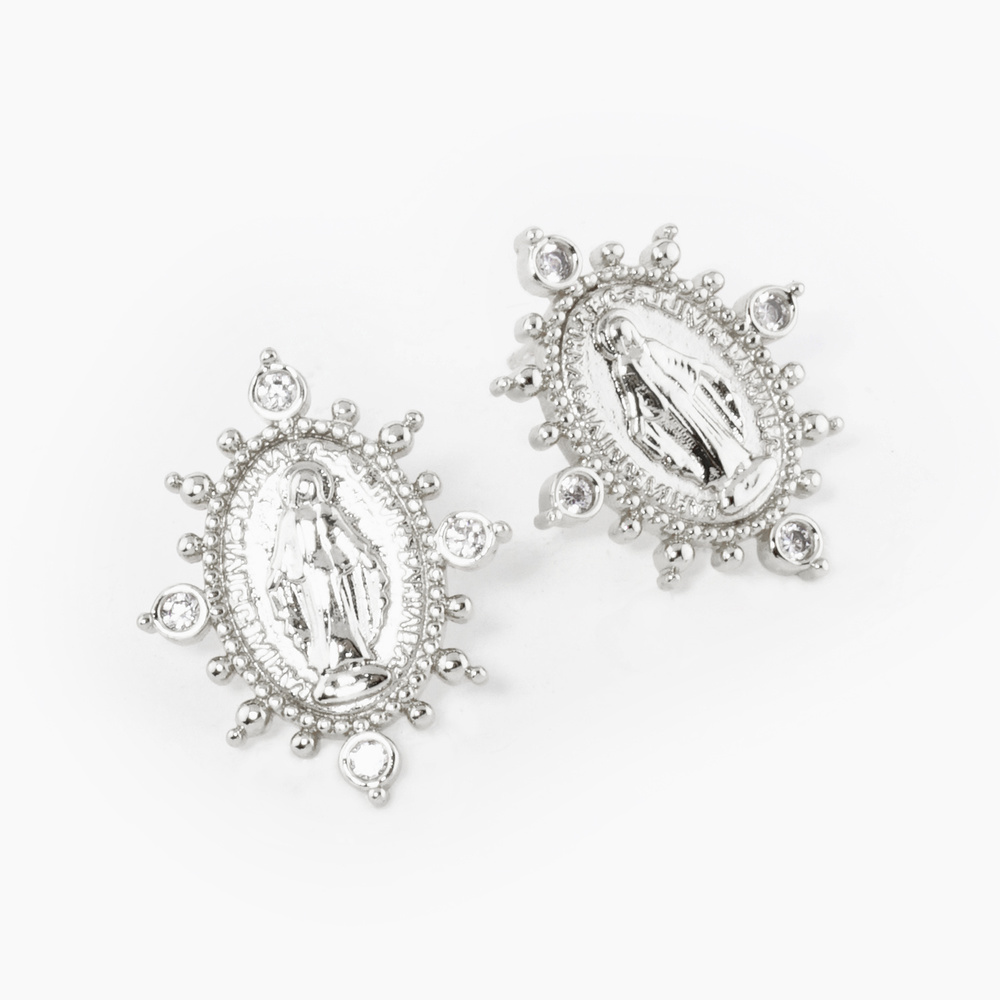 CUBIC ZIRCONIA EMBELLISHED VIRGIN MARY (VIRGEN DE GUADALUPE) OVAL EARRINGS