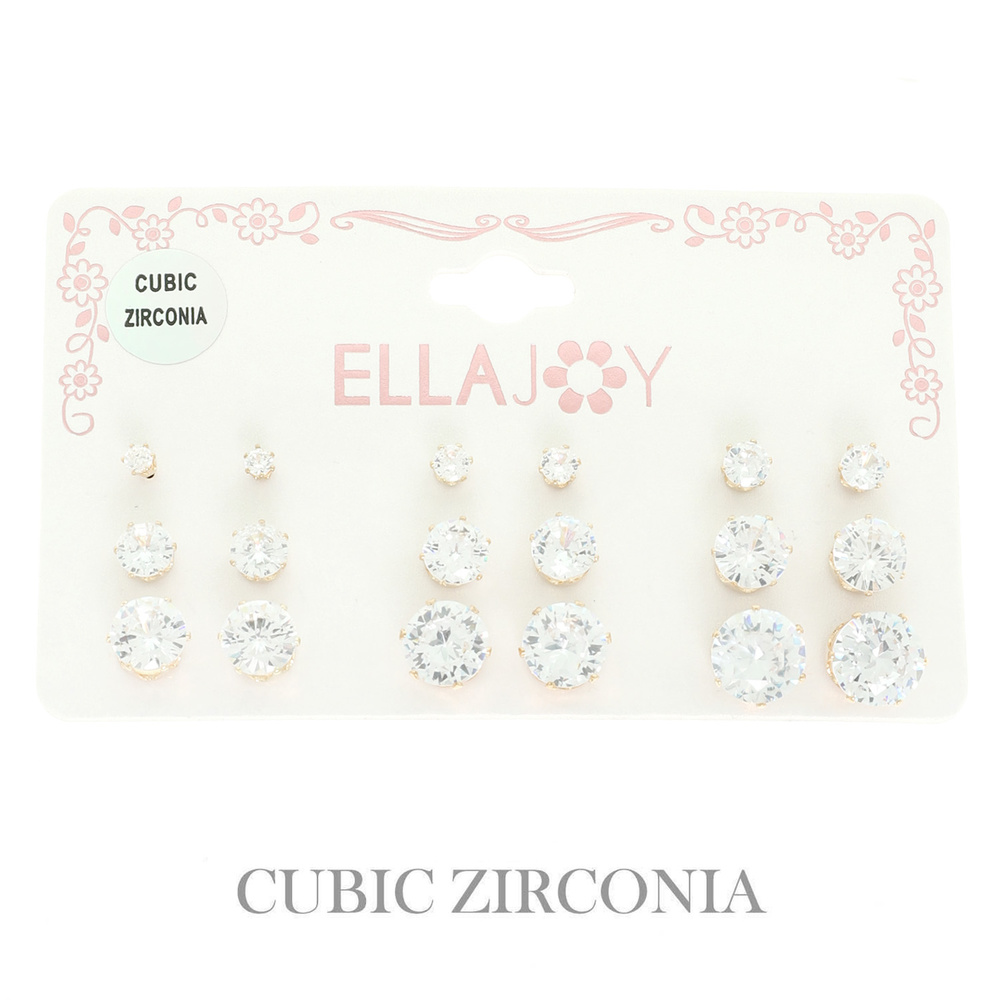 CUBIC ZIRCONIA ASSORTED STUD EARRING SIZE SET IN GOLD-TONE METAL