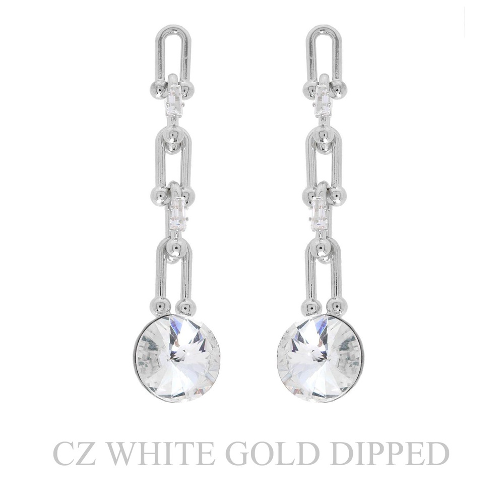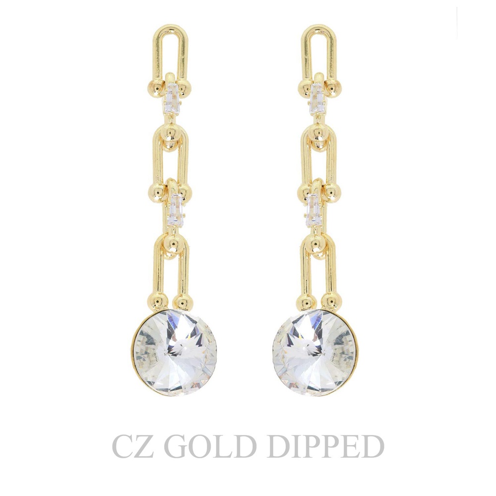 GOLD PLATED CUBIC ZIRCONIA CHAIN LINK LINEAR SOLITAIRE EARRINGS