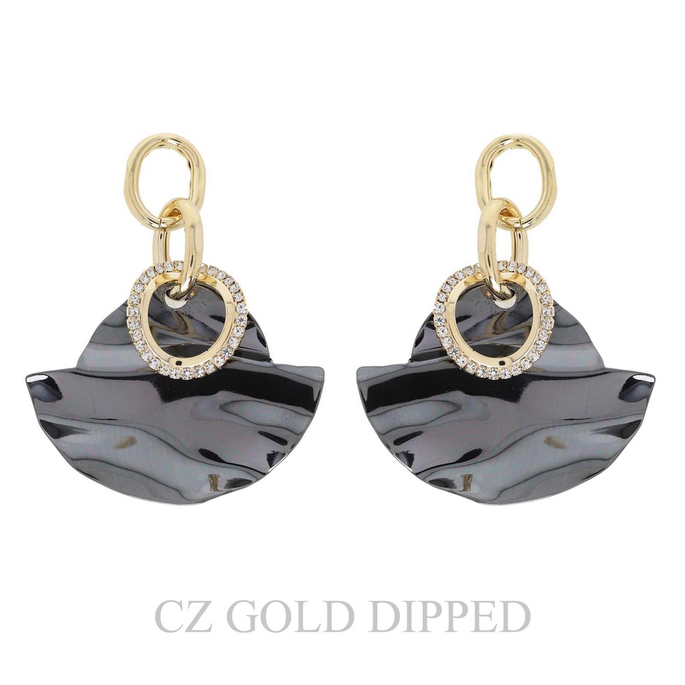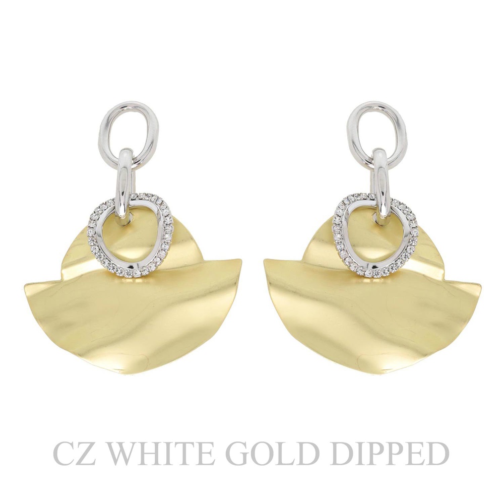 Gold Plated Cz Wavy Fan Shaped Chain Link Earrings