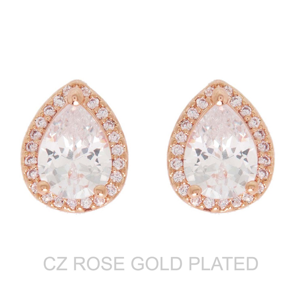 GOLD PLATED CUBIC ZIRCONIA PAVE TEARDROP HALO STUD EARRINGS