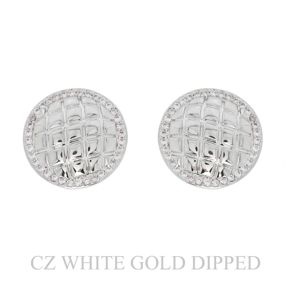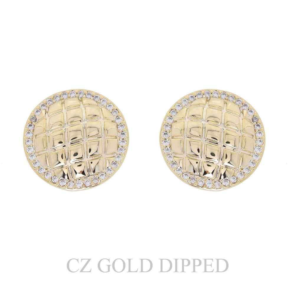 GOLD PLATED CUBIC ZIRCONIA BASKET WEAVE DISC STUD EARRINGS