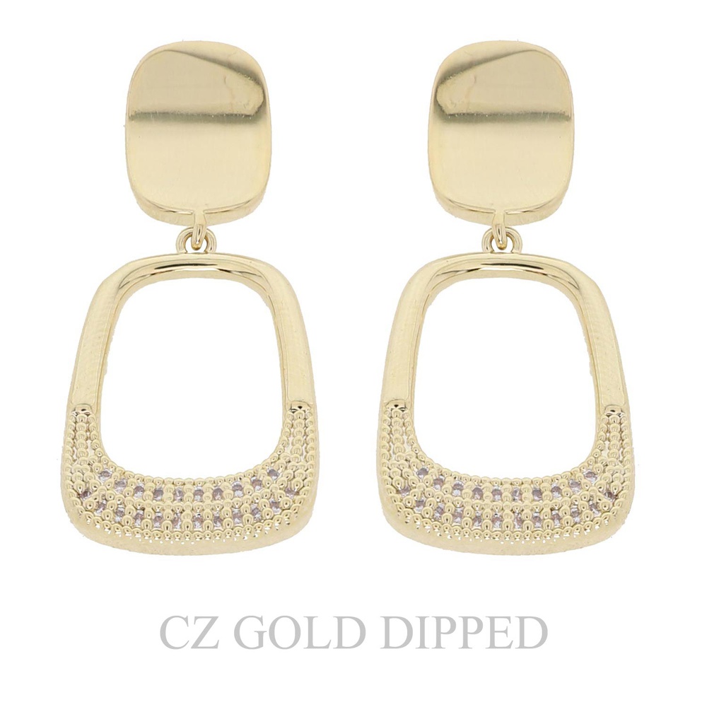 2-TIER GOLD PLATED CUBIC ZIRCONIA OPEN SQUARE DANGLE AND DROP EARRINGS