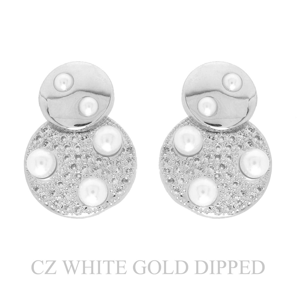 Gold Plated Cz Pearl Layered Double Disc Earrings