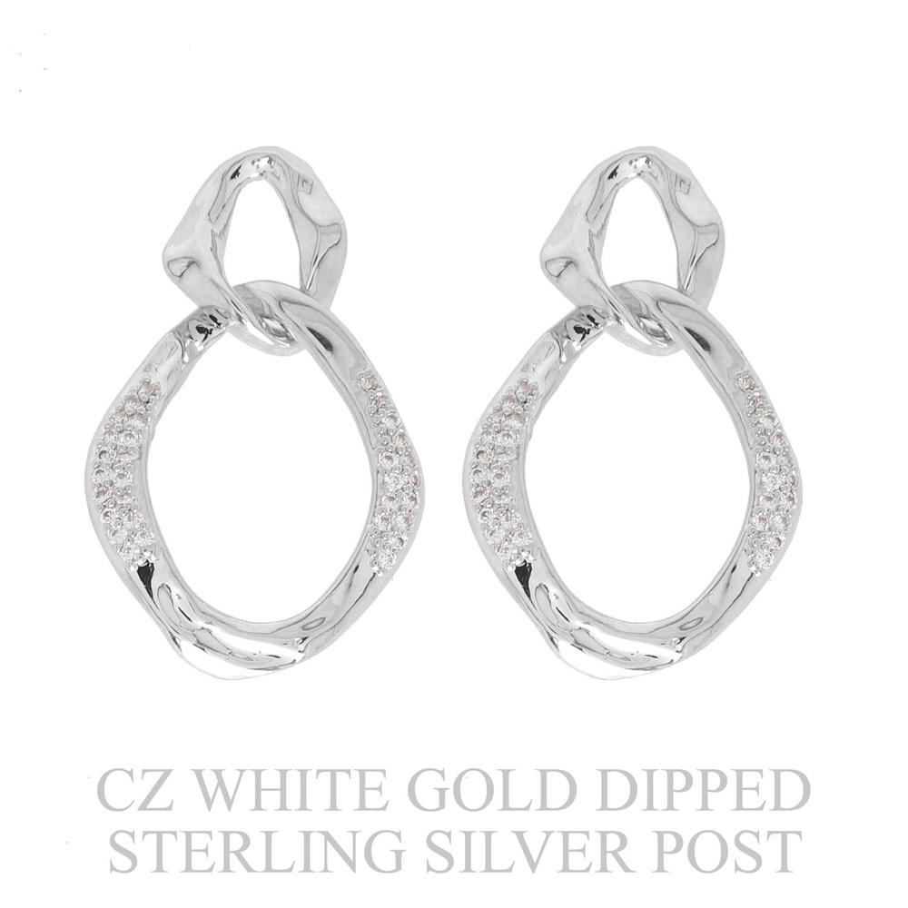 GOLD PLATED CUBIC ZIRCONIA HAMMERED CHAIN LINK EARRINGS