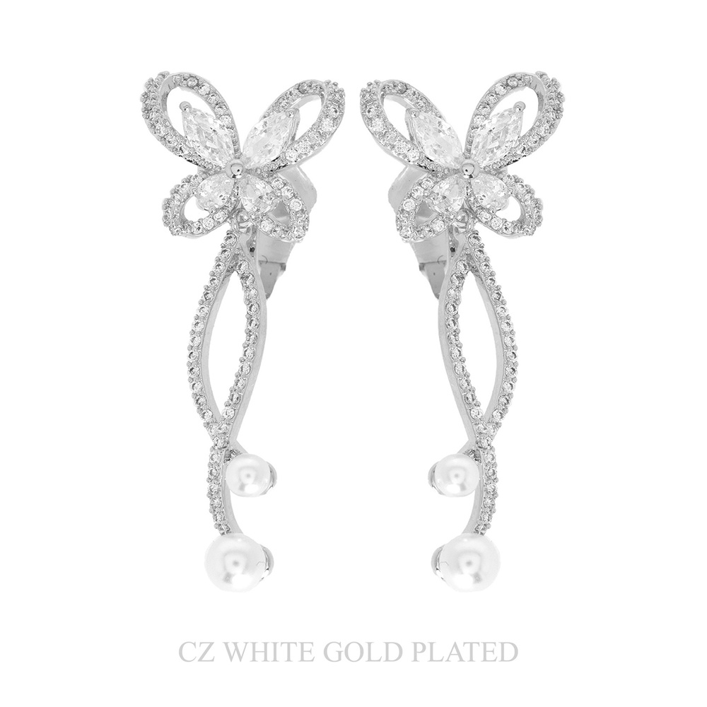 BUTTERFLY CUBIC ZIRCONIA GEMSTONE AND PEARL DROP EARRINGS
