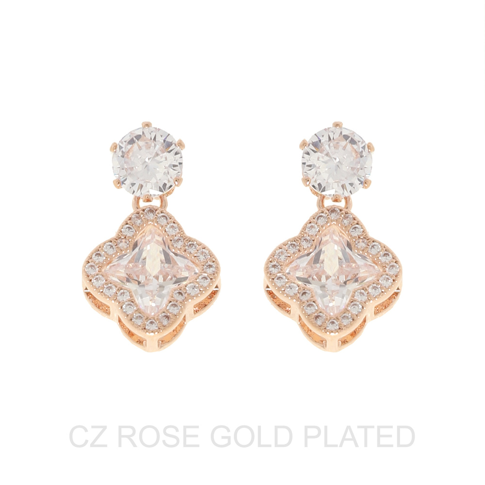 2-tier Gold Plated Cz Quatrefoil Drop Earrings