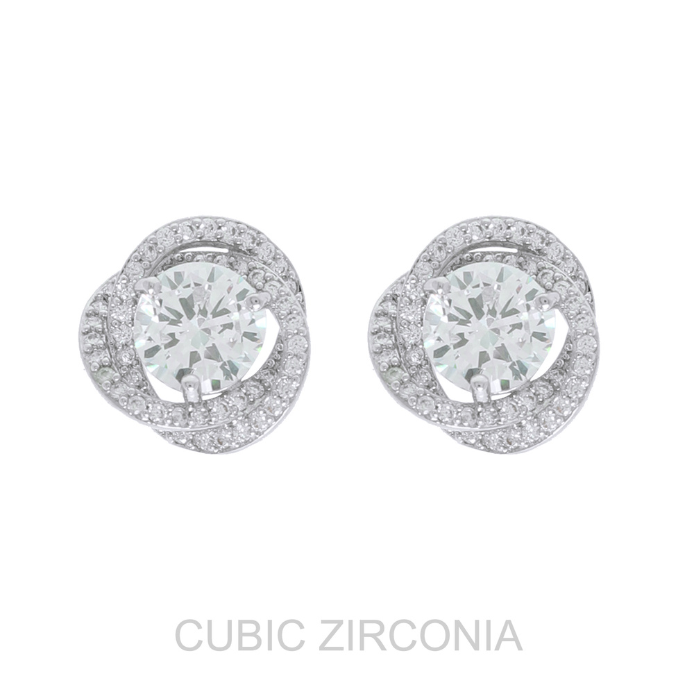 CUBIC ZIRCONIA GEMSTONE SPIRAL HALO STUD EARRINGS