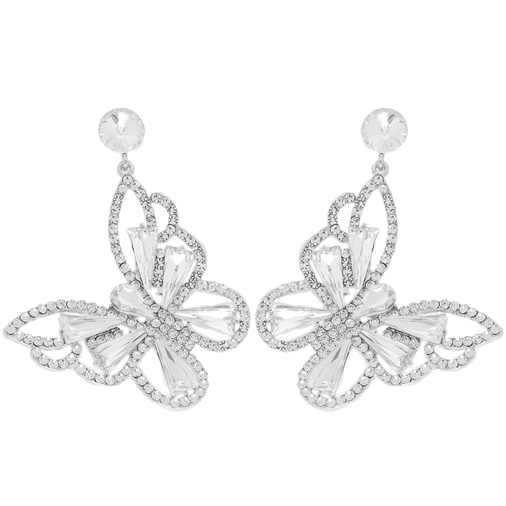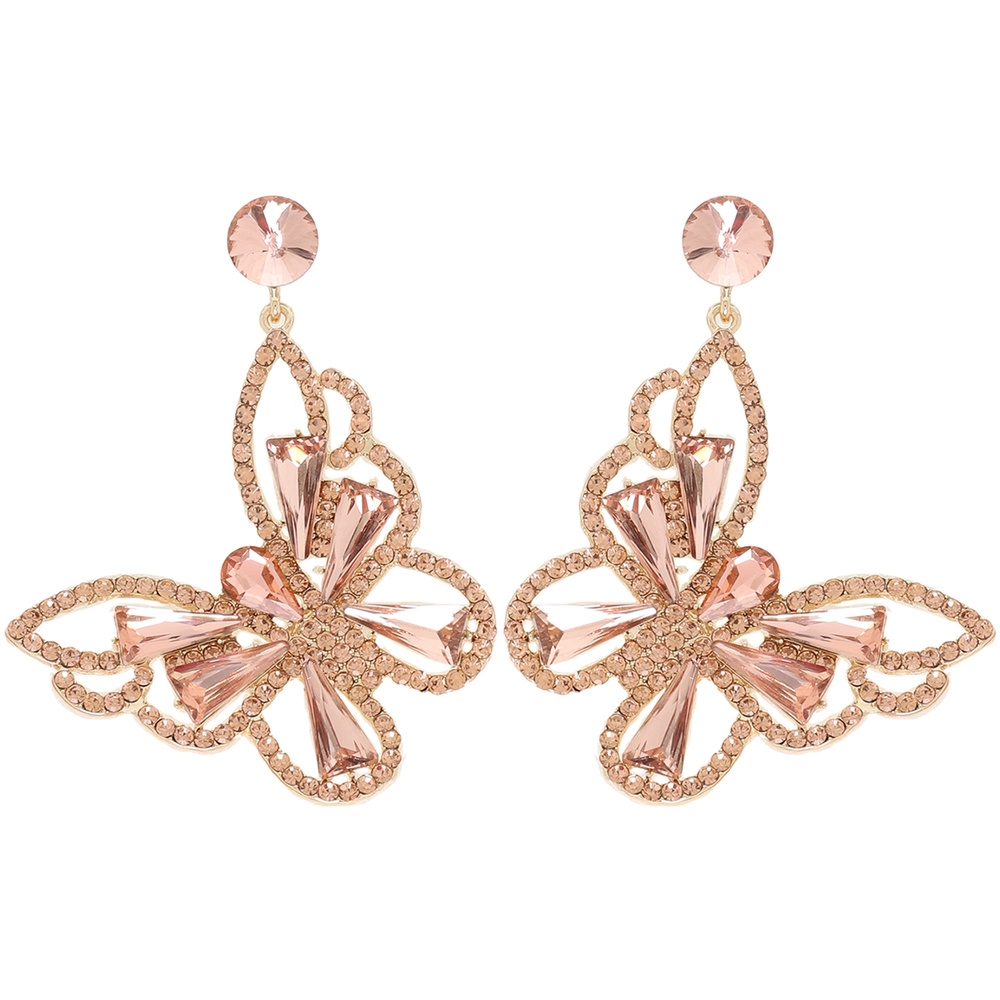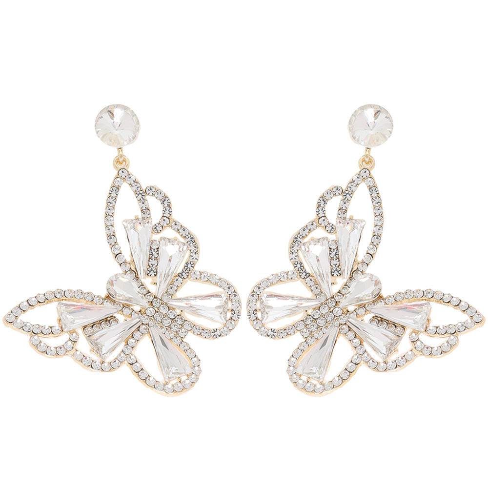 2-tier Butterfly Crystal Gemstone Long Drop Earrings