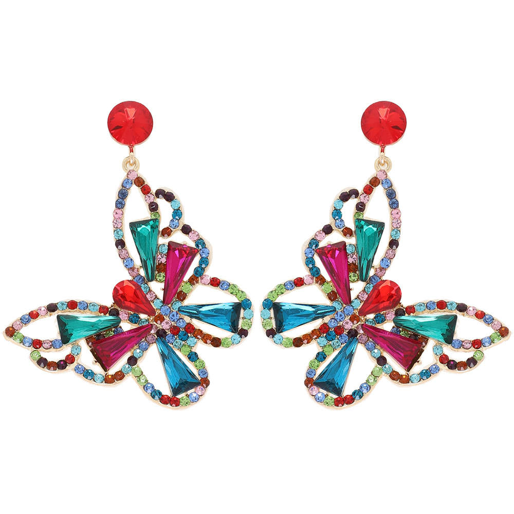 2-TIER BUTTERFLY CRYSTAL GEMSTONE LONG DROP EARRINGS