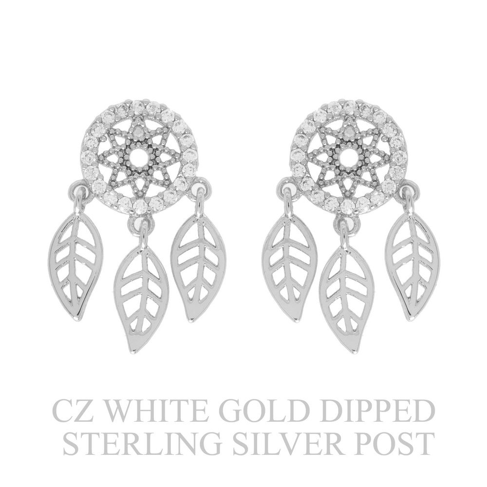 Gold Plated Cz Pave Dream Catcher Drop Earrings