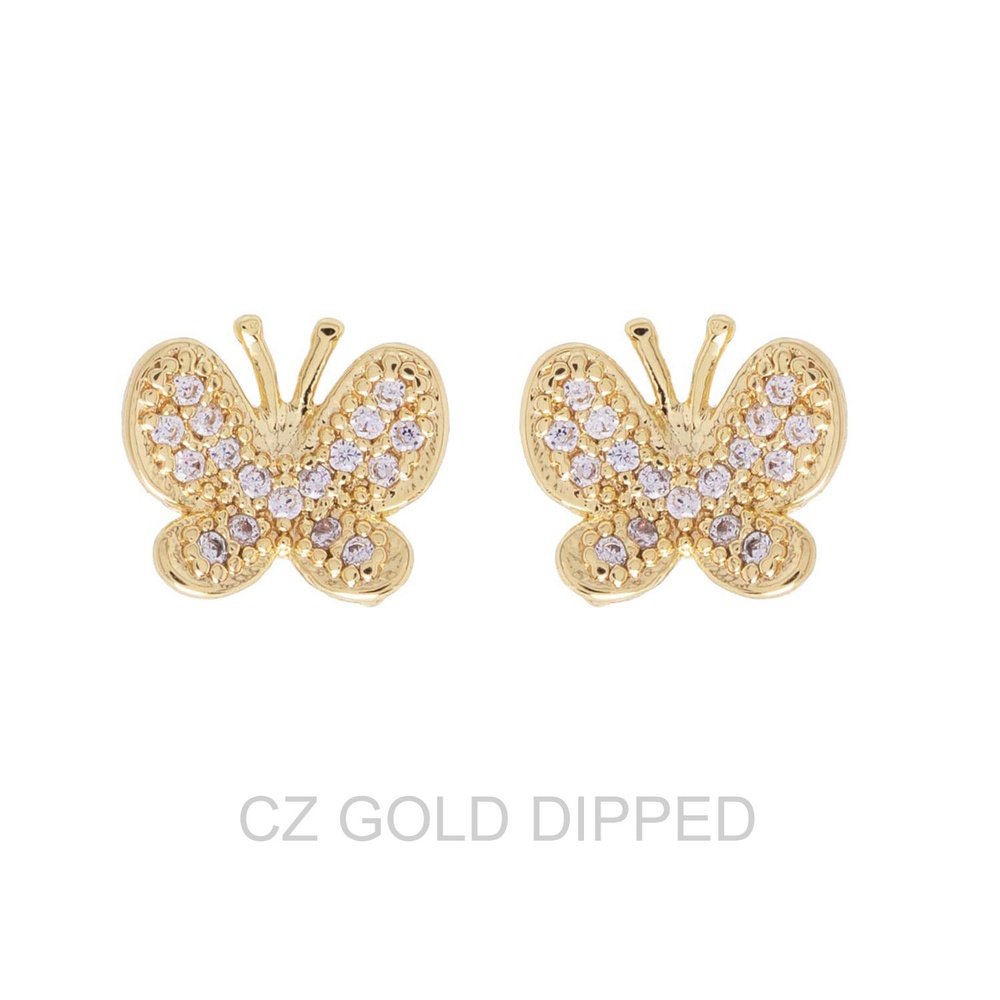 GOLD DIPPED CUBIC ZIRCONIA PAVE BUTTERFLY STUD EARRINGS