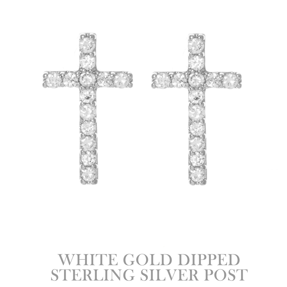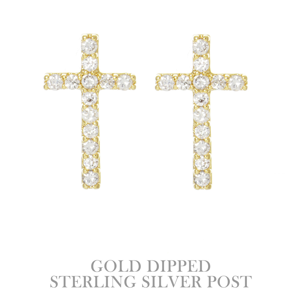 CUBIC ZIRCONIA .925 STERLING SILVER POST GOLD PLATED CROSS SHAPED STUD EARRINGS IN YELLOW GOLD PLATTING made in KOREA