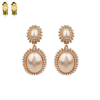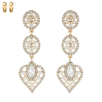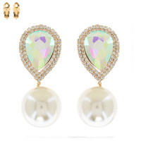 RHINESTONE & SYNTHETIC PEARL CLUSTER LONG DROP CLIP ON EARRINGS