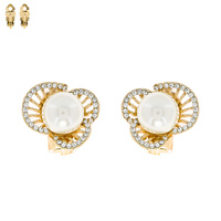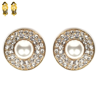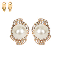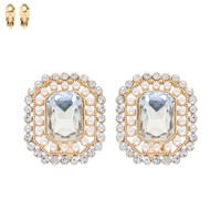 Rhinestone & Synthetic Pearl Cluster Long Drop Clip On Earrings