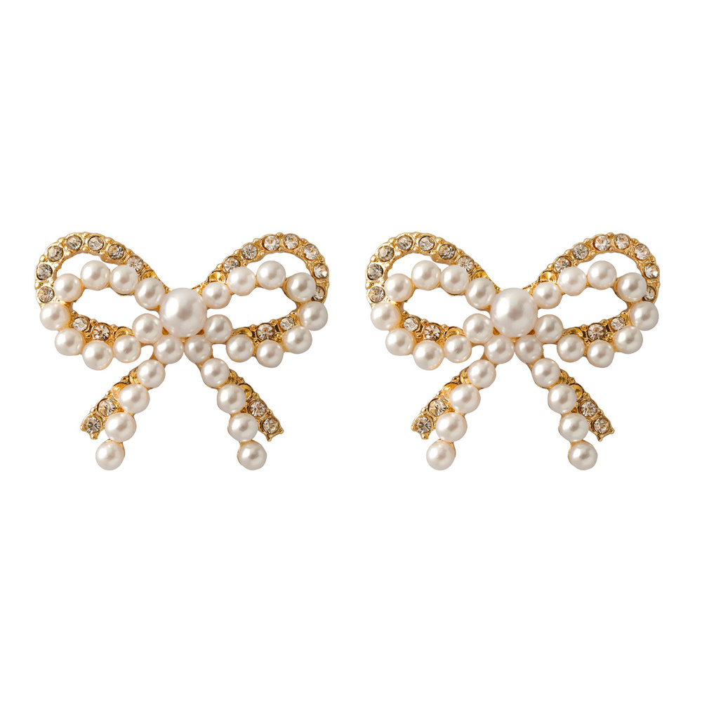 PEARL EMBELLISHED RHINESTONE PAVE BOWKNOT POST EARRINGS