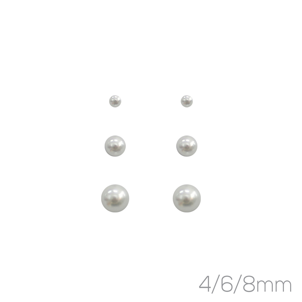 3-PAIR ASSORTED WHITE PEARL STUD EARRING SET
