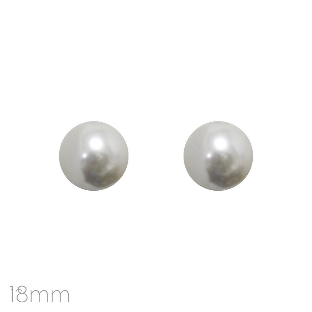 ROUND PEARLESCENT PEARL POST STUD EARRINGS (18MM)
