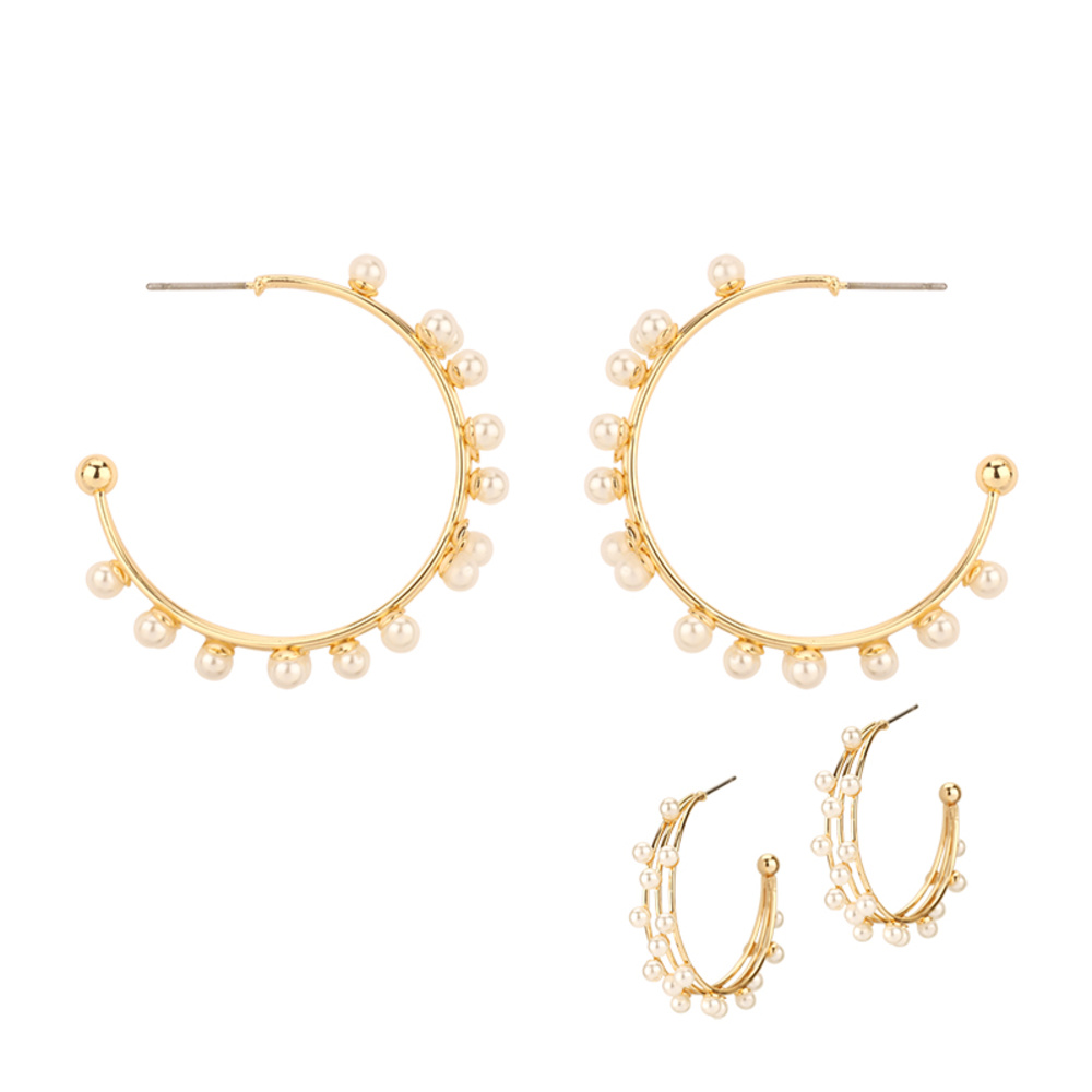 YELLOW GOLD-PLATED PEARL HOOP PUSH-BACK EARRINGS