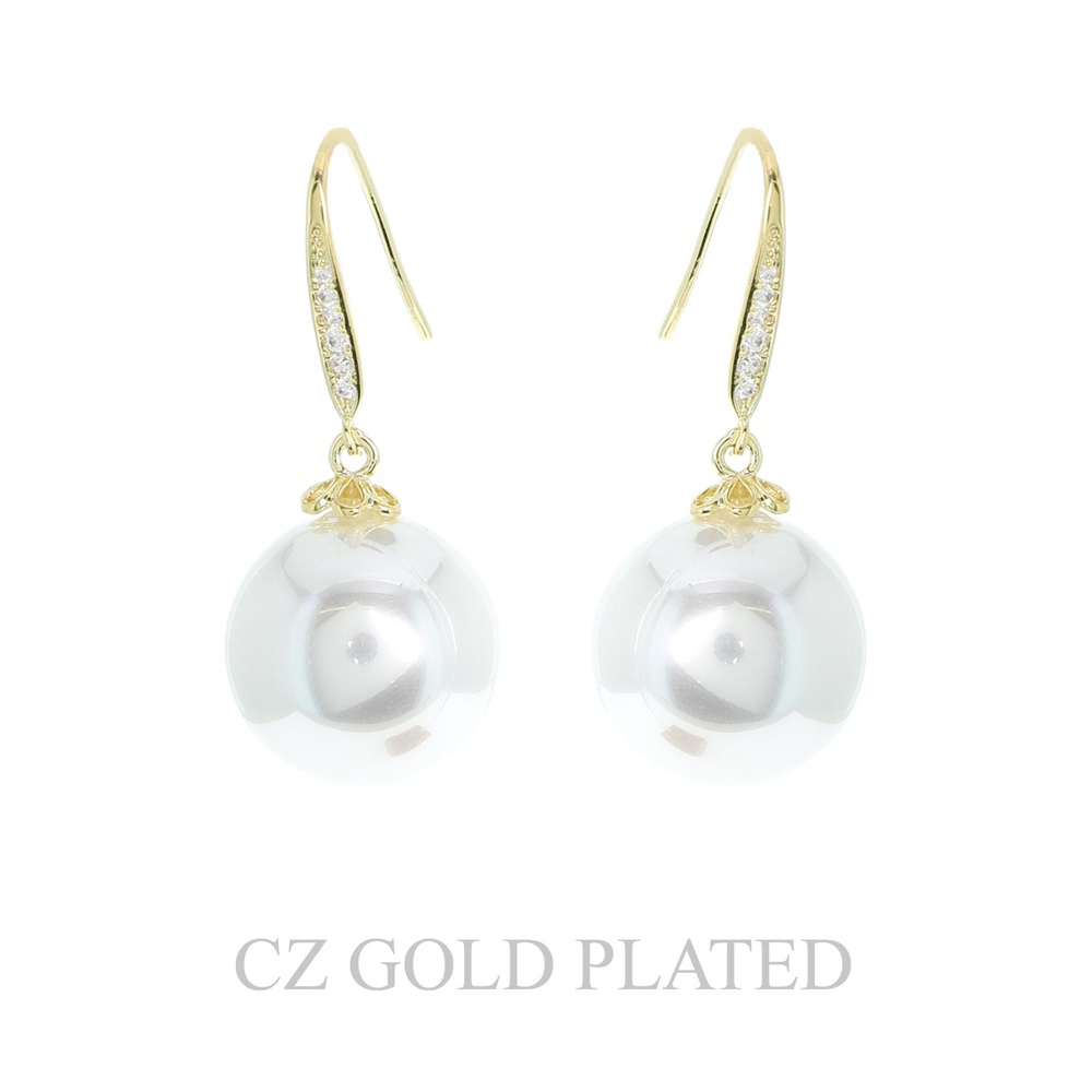 Gold Plated Cz Cap Pearl Fish Hook Earrings