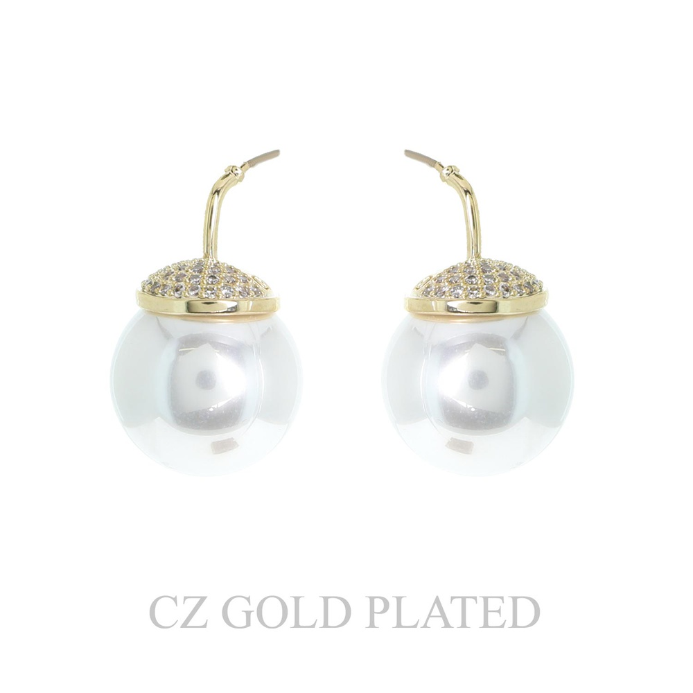 GOLD PLATED CUBIC ZIRCONIA ACORN PEARL EARRINGS