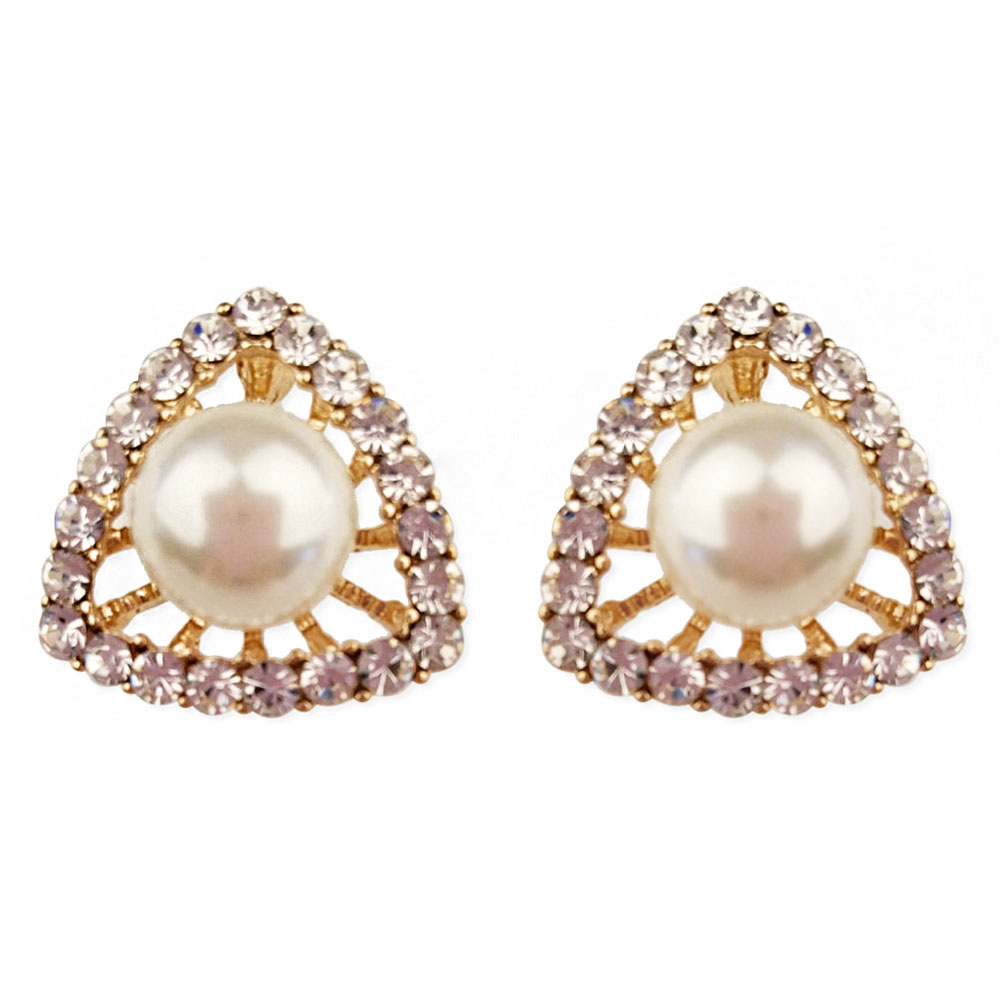 Stone Triangle With Center Pearl Stud Earrings Eq218gcr
