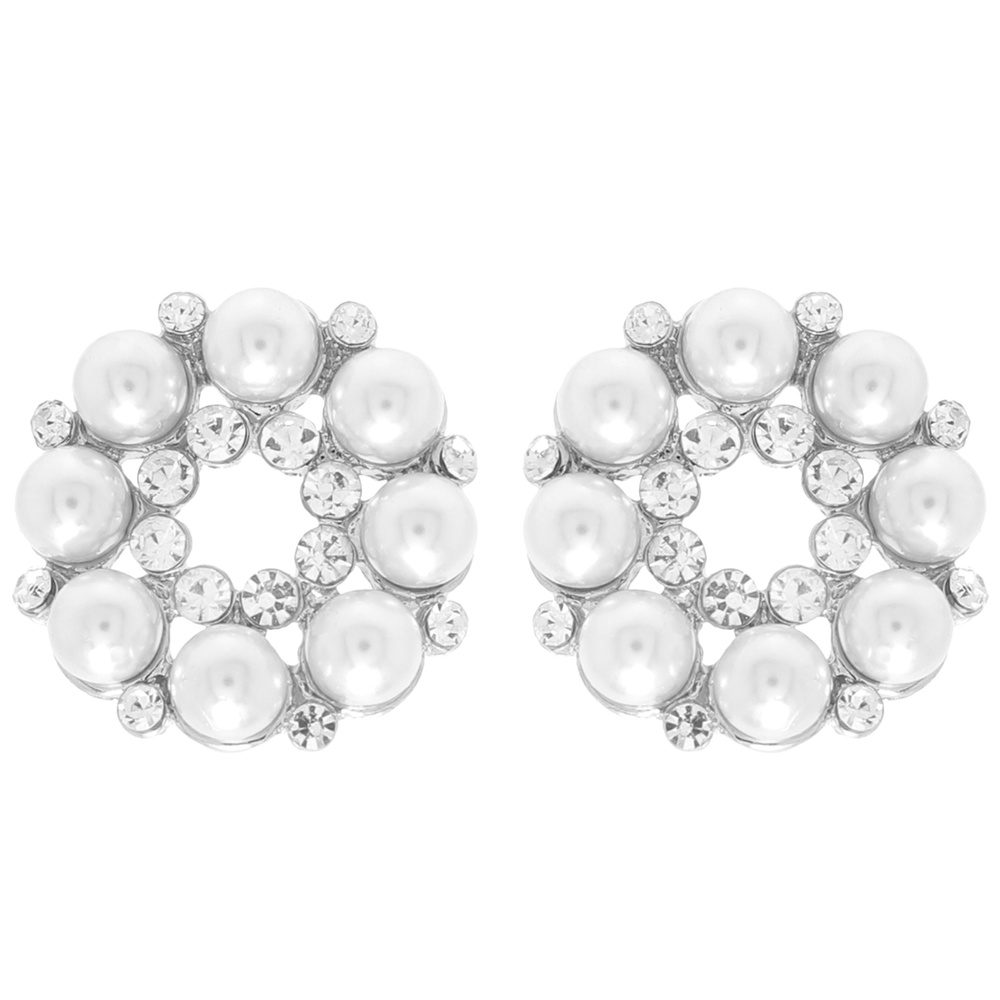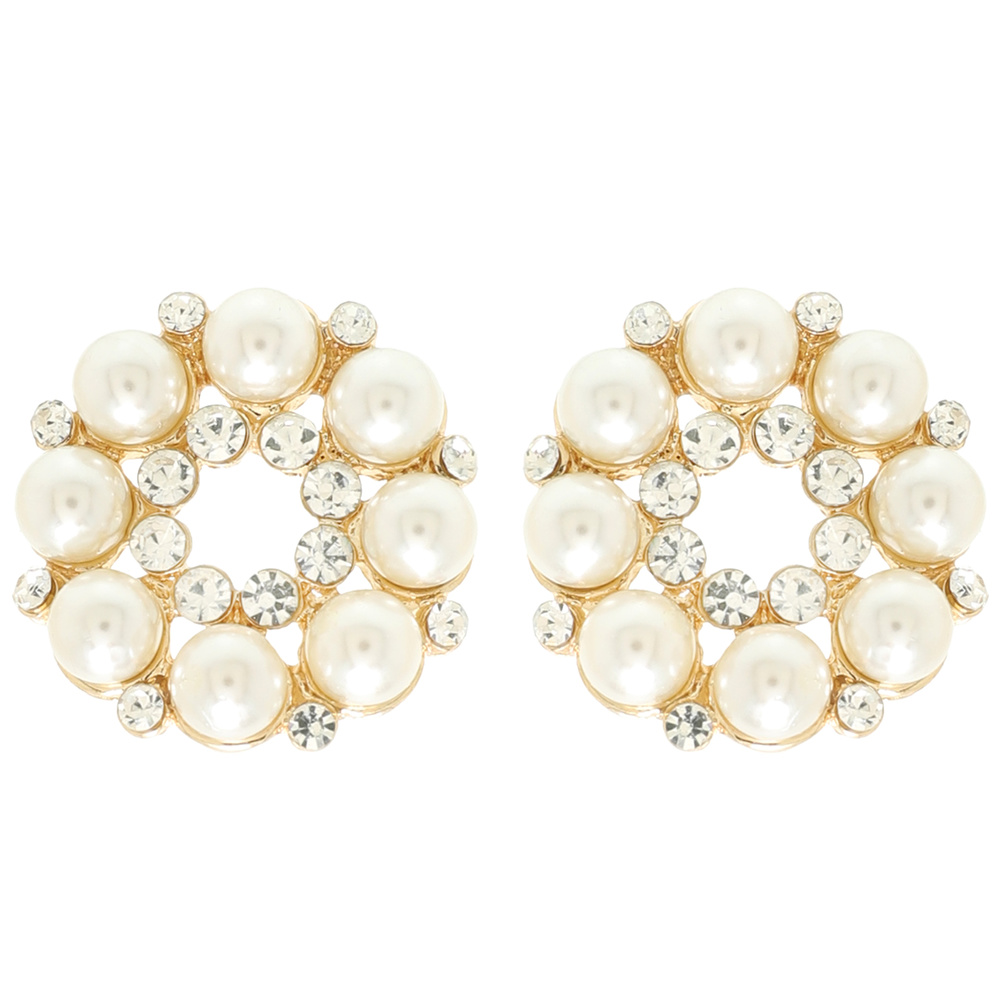 FLORAL RHINESTONE EMBELLISHMENT PEARL POST EARRINGS