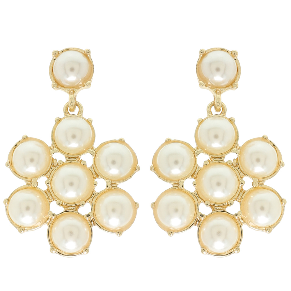 VINTAGE INSPIRED FLORAL PEARL CLUSTER POST DANGLE EARRINGS