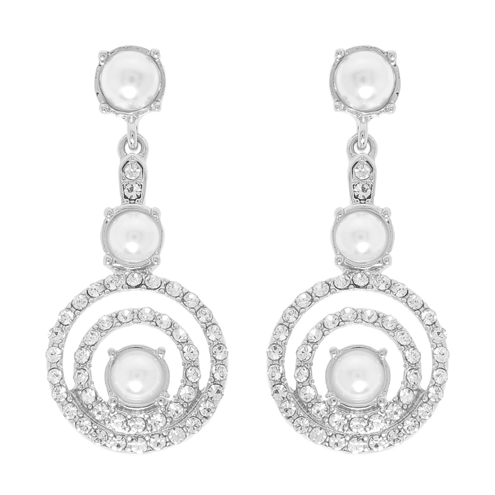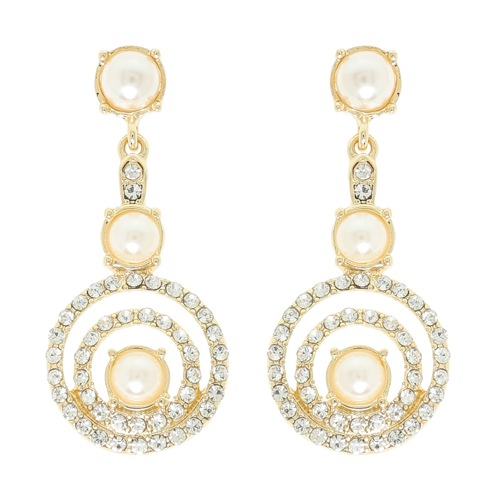 PEARL AND OPEN RHINESTONE HALO POST DANGLE EARRINGS