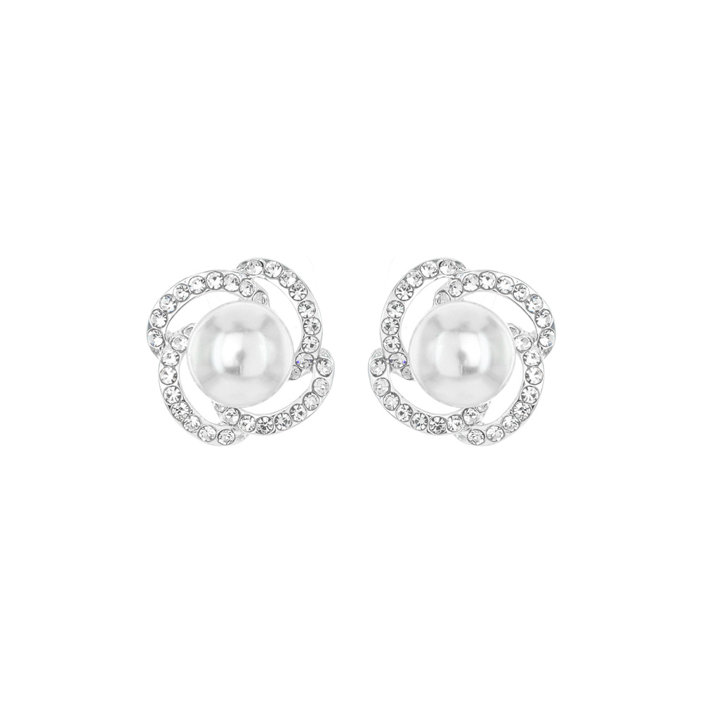 FLORAL TWIST CRYSTAL RHINESTONE PAVE AND SYNTHETIC PEARL STUD EARRINGS