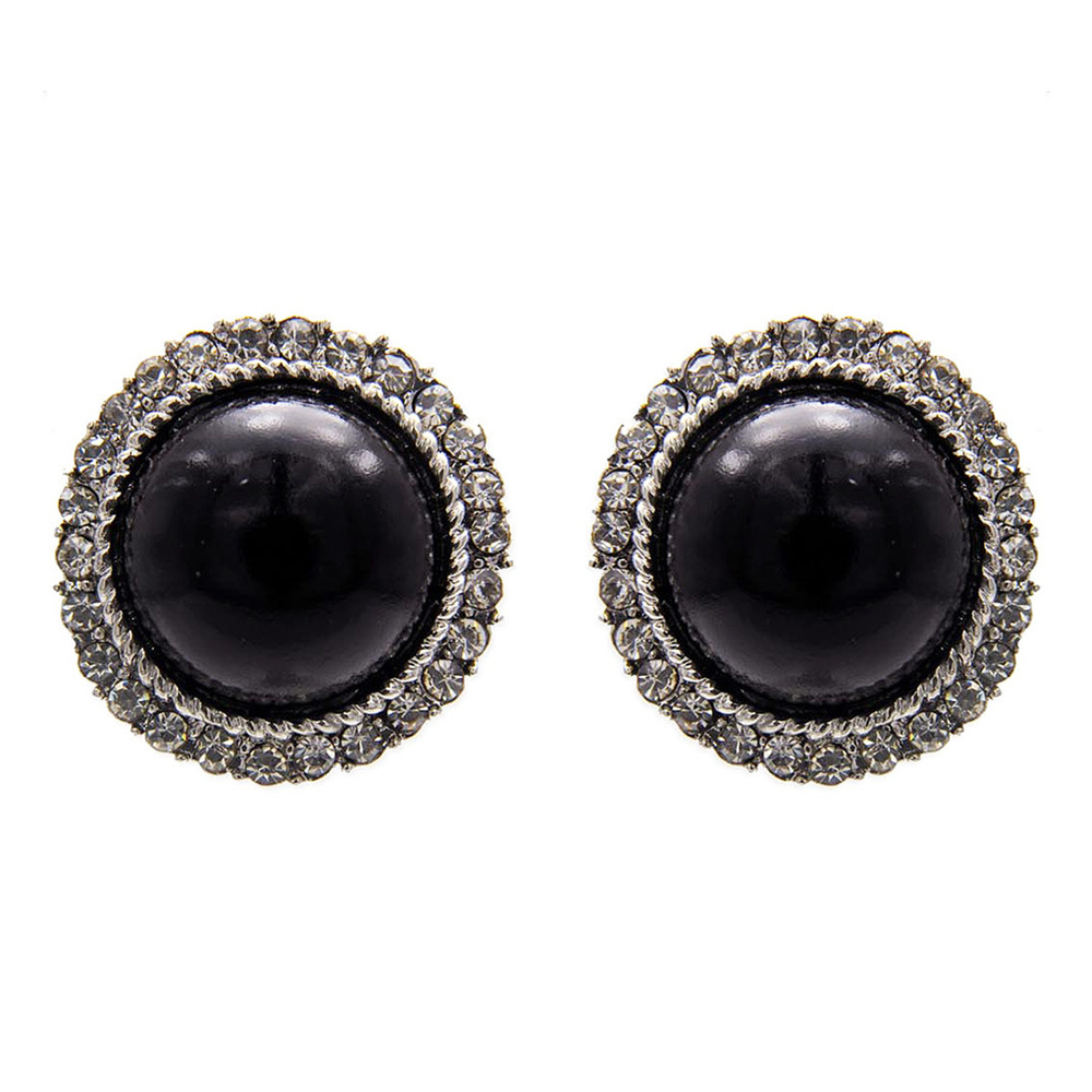 Round Pearl With Stone Edge Stud Earrings