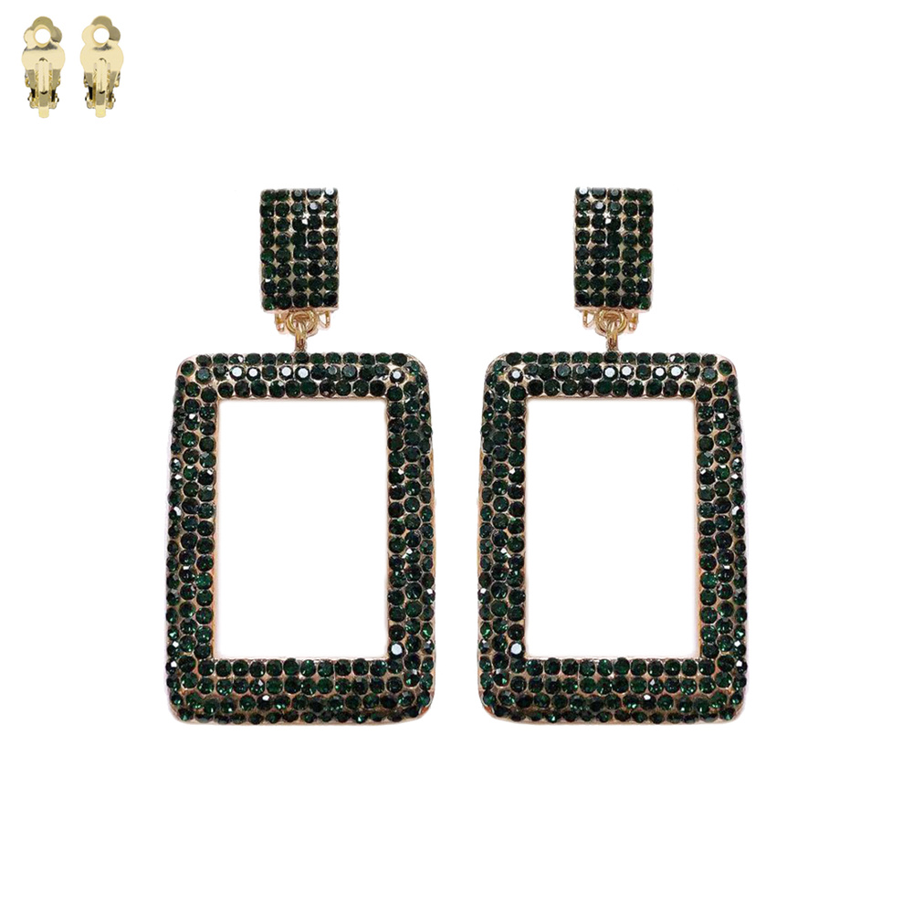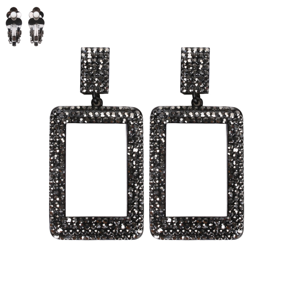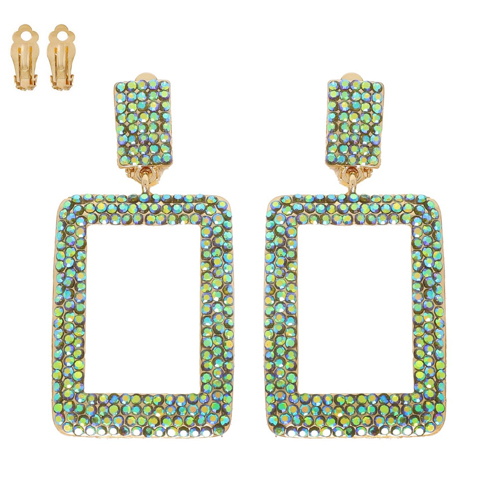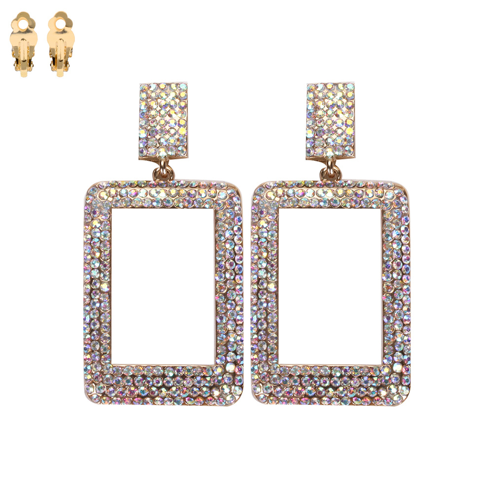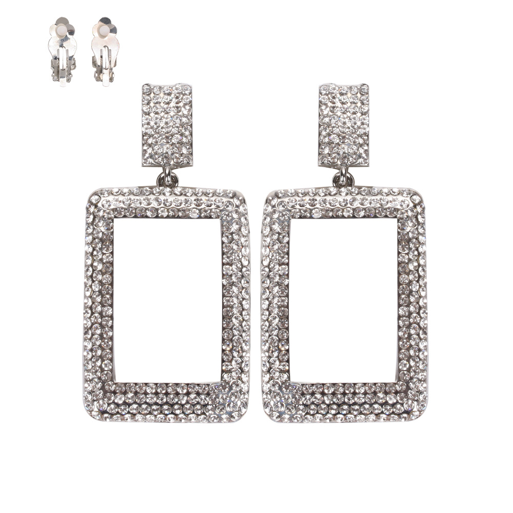 Open Rectangle Crystal Rhinestone Clip-on Earrings