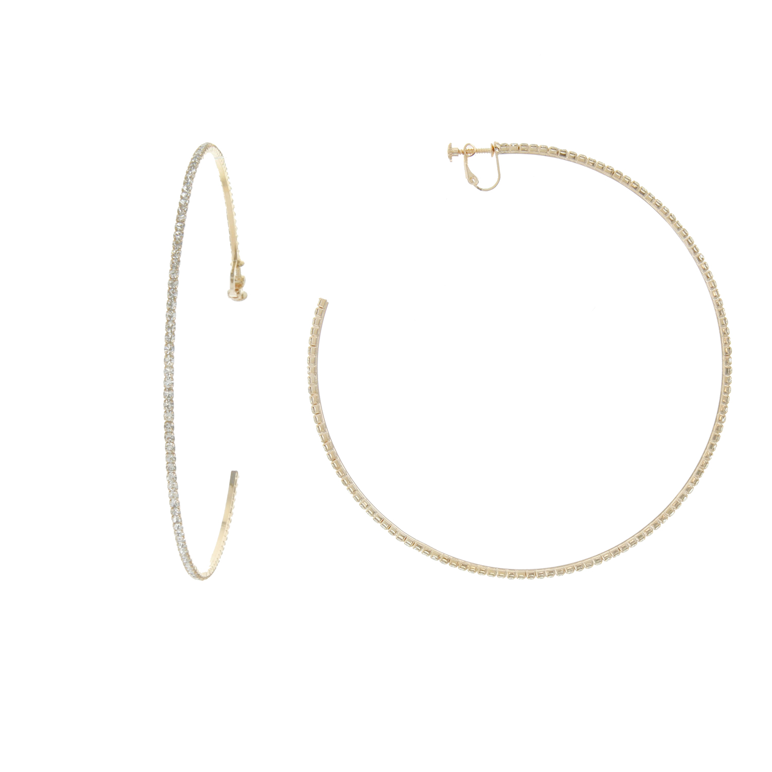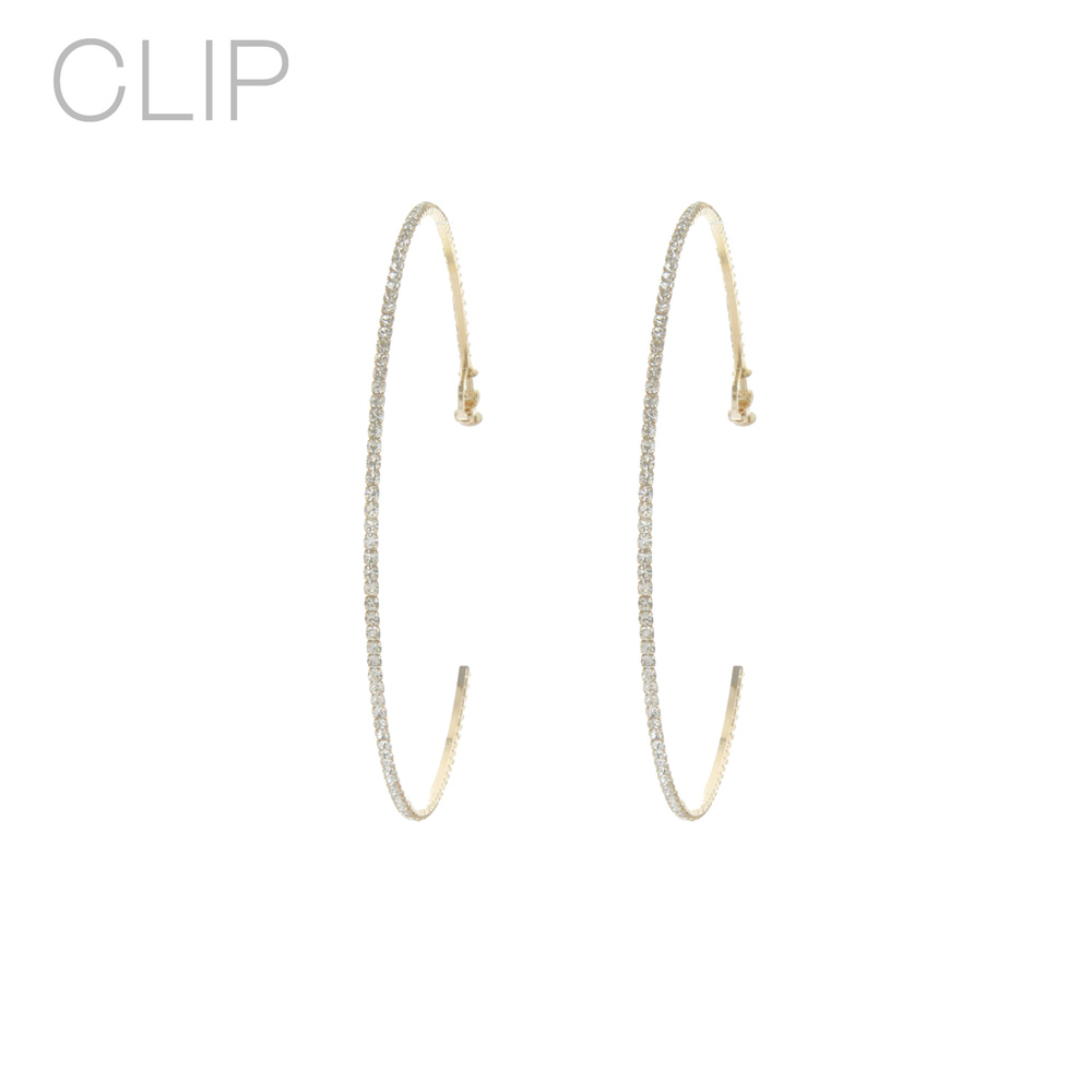 100MM RHINESTONE CLIP HOOP EARRINGS