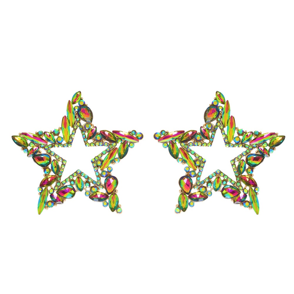 Crystal Rhinestone Open Star Cluster Drop Earrings