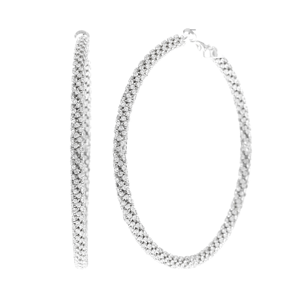 RHINESTONE PAVE TUBE HOOP EARRINGS WITH OMEGA BACK CLOSURE (80MM)